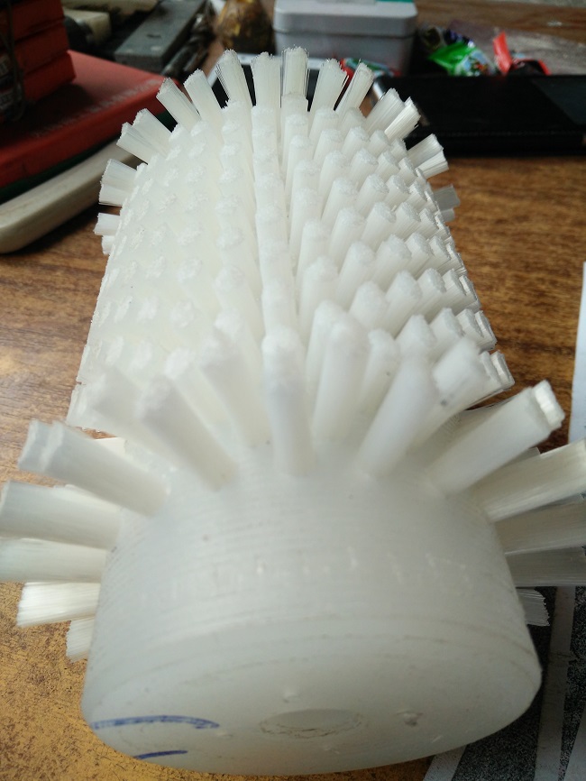 產(chǎn)品的參數(shù):pp棒的直徑50mm和直徑60mm鉆孔排列沒空之間的間隔在5mm每一個毛的孔的直徑在5mm,植毛0.25mm白色的pbt絲技術(shù)注意的事項(xiàng):一端有4個定位孔,此端的不植毛孔數(shù)為18mm倆端個倆圈毛長為15mm其余為毛長10mm...